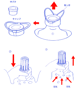 ※取っ手を持ってキャップを回さないで下さい。取っ手が破断して破断面でウォーターバッグを傷つけることがあります。