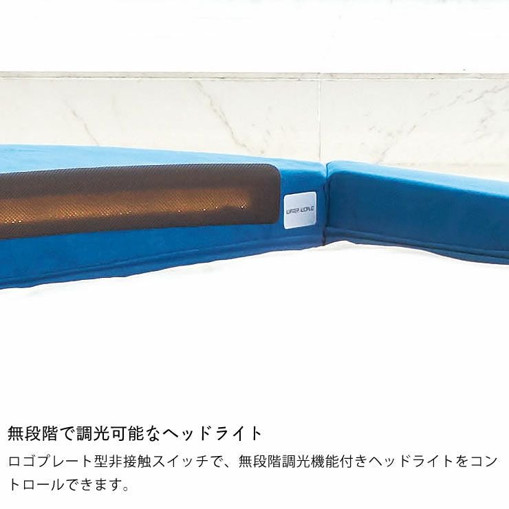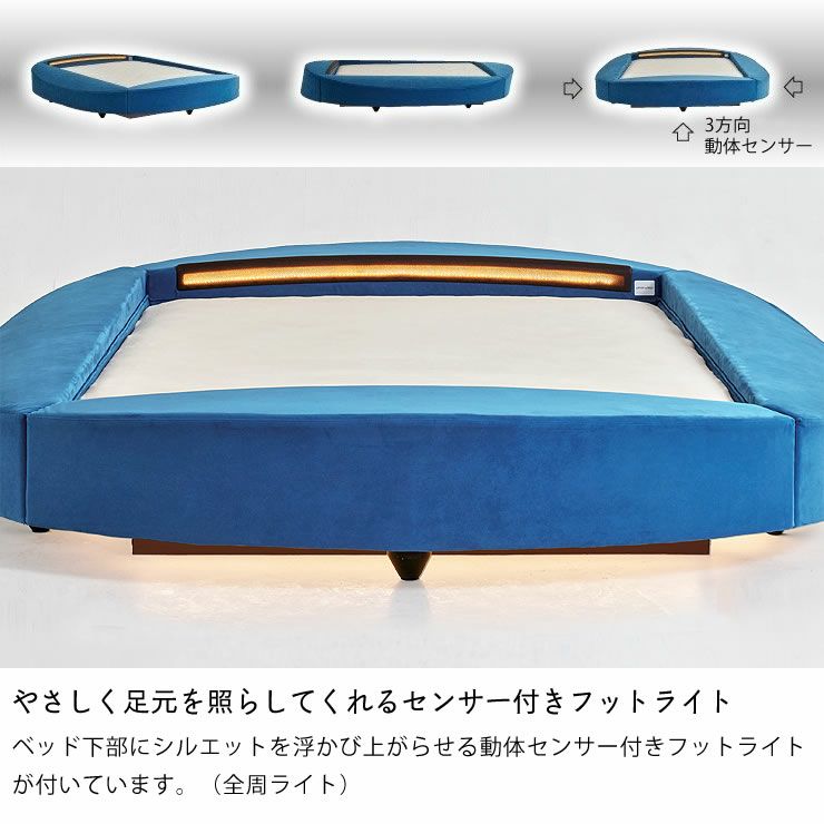 ベッド下部にシルエットを浮かび上がらせる動体センサー付きフットライトが付いています。(全周ライト)