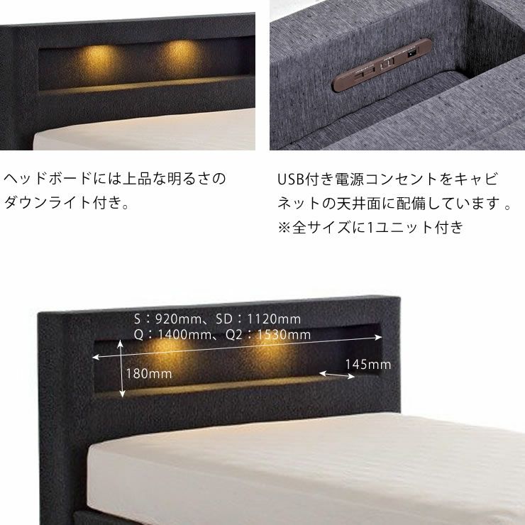 ヘッドボードには上品な明るさのダウンライト付き。